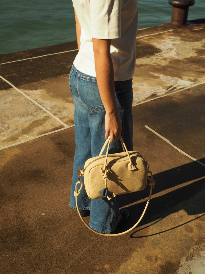 THE MINI GALA BAG PLUS- Bolso en piel vacuno color AVENA con BANDOLERA