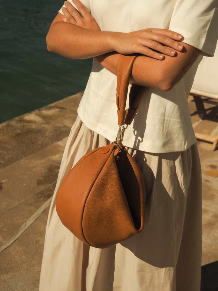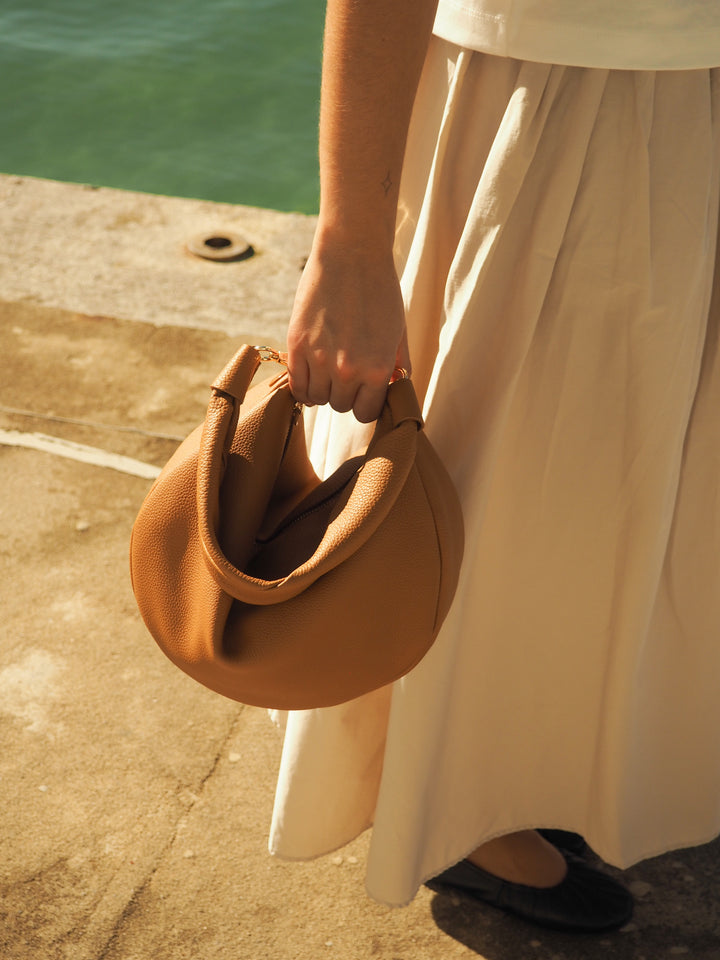 THE MINI GONDOLA BAG - Bolso en piel vacuno color CAMEL